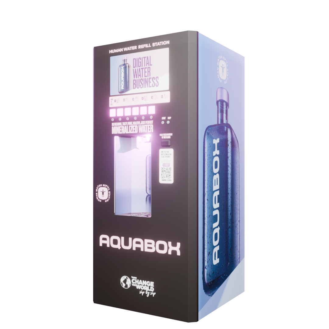 The AQUABOX 1.0 (AC) vending machine is a standalone water purification and water dispensing system. The machine fills from 1 to 19 liters bottles with ambient water.