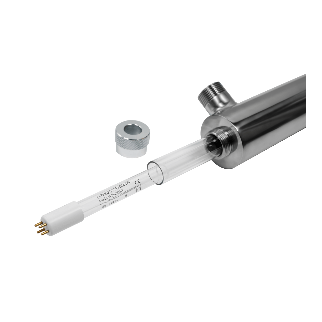 Water passes through the ultraviolet disinfectant, where the disinfection process takes place. The quartz cover is necessary to prevent water from entering the emitter case.
