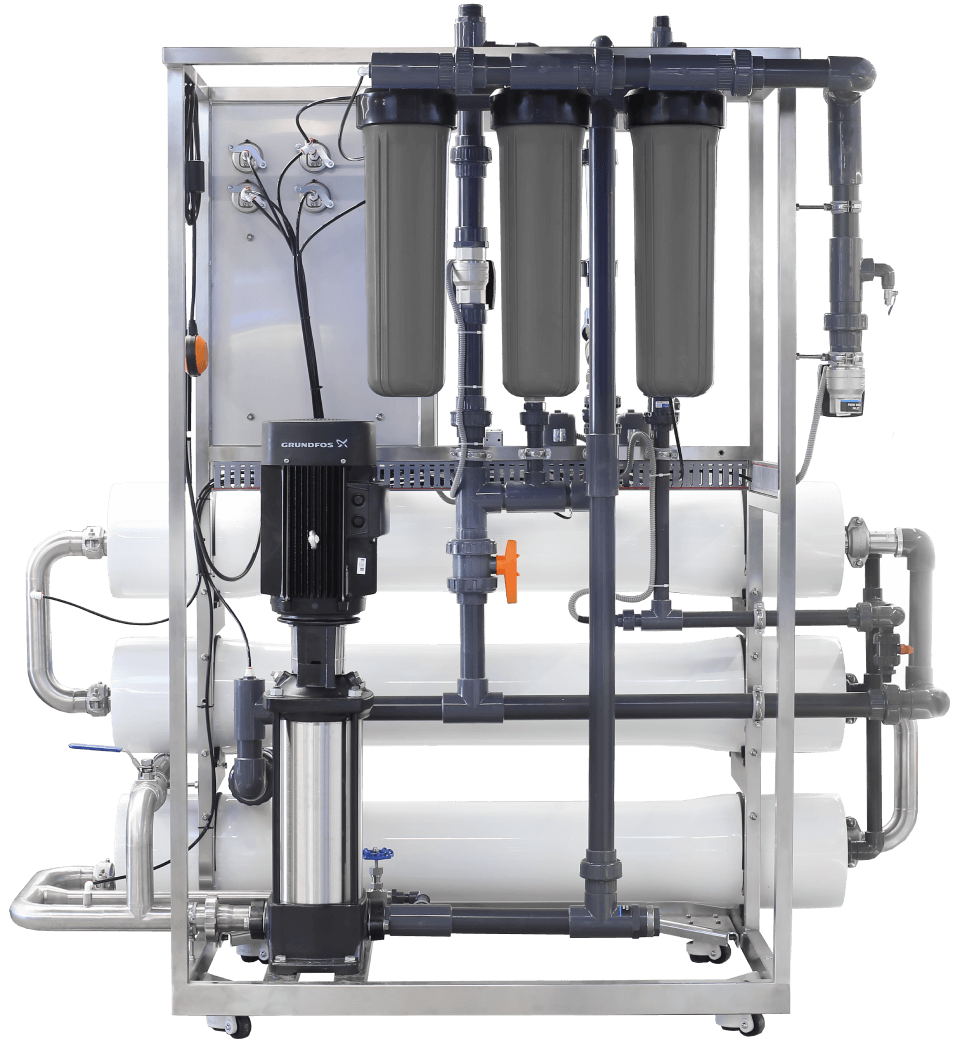 Ecosoft INOX MO3 is an advanced industrial reverse osmosis system equipped with IoT functionality. It can be used for water with TDS up to 4500 ppm and operates at a pressure of 15 bars. The pressure pipeline is made of AISI 316 stainless steel, which makes these systems highly reliable in operation. Ecosoft reverse osmosis systems are used in food and pharmaceutical industry, energy, chemical, semiconductor manufacturing, steam boilers and other industrial applications.