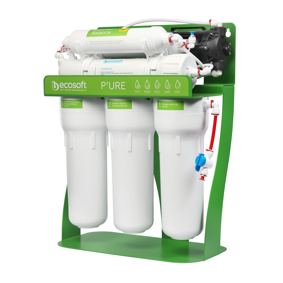 Ecosoft PURE reverse osmosis filters combine innovative technologies with natural processes to deliver consistently mineral-rich, delicious water. Ecosoft PURE Balance system provides an economical and eco-friendly solution for pure, calcium and magnesium-enriched water, reducing PFAS content by up to 99%.