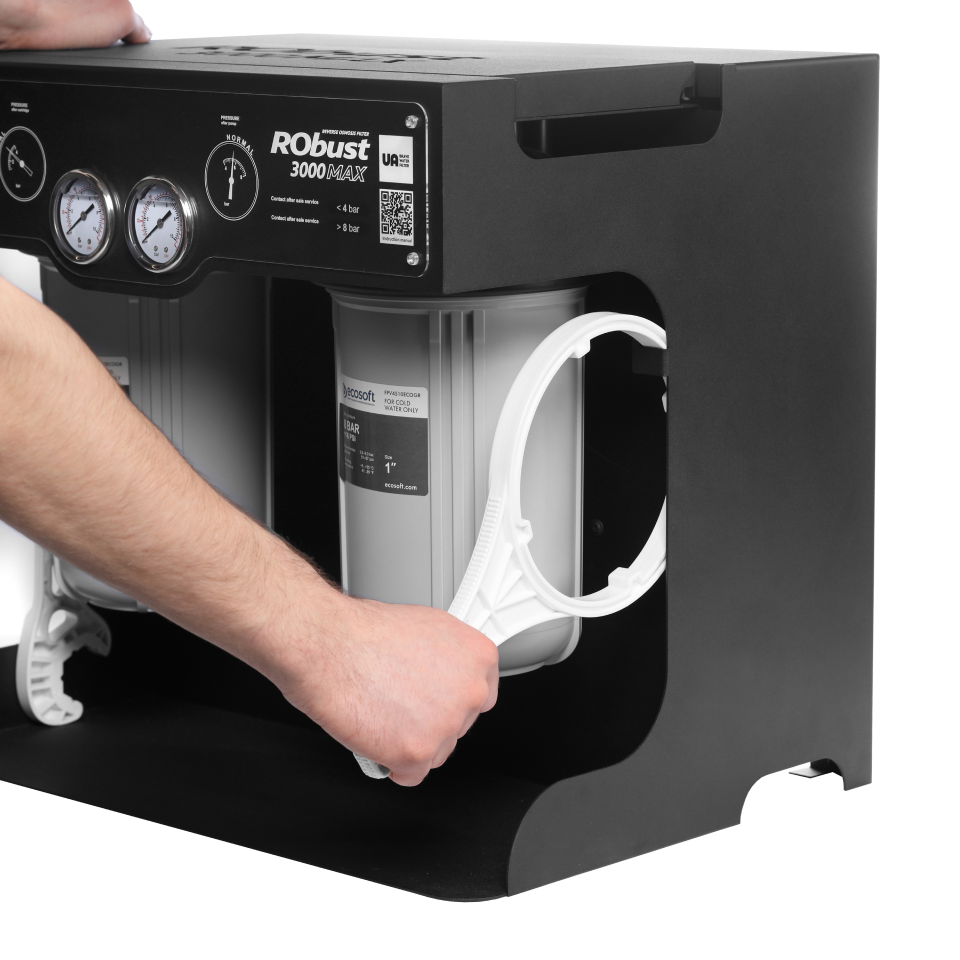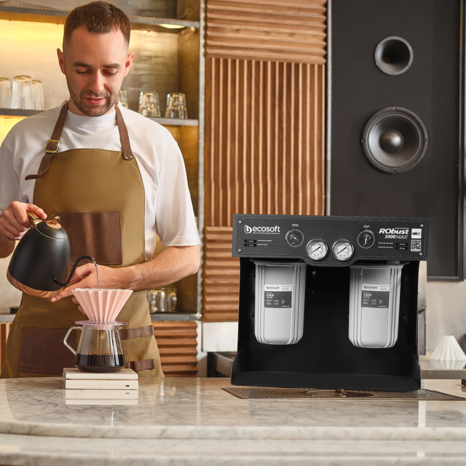 Ecosoft RObust 3000MAX is designed to supply purified water to various equipment, such as ice makers, steamers, ovens, dishwashers, dispensers, and more. This versatile system is ideal for installation in restaurants, water production facilities, small breweries, car washes, private homes, and other settings where high-quality water is essential.